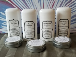 Contains all natural ingredients. Arnica, calendula and st john’s wort. Also includes vitamin e, essential oils, rosemary, eucalyptus, melaleuca and lemongrass.